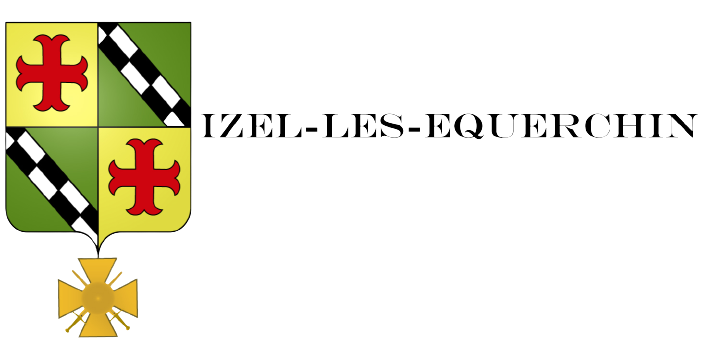 Sur le blason figurent donc les armes de l'Abbaye de Saint Vaast d'Arras, détentrice de la seigneurie d'Izel depuis 1098 et celles de la maison des Jésuites de Béthune qui s'était vu attribuer une partie de la justice. Beaucoup plus tard, la croix de guerre obtenue par la commune en 1920 a été ajoutée à la pointe du blason.