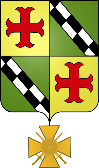 "L'abbaye de Saint-Vaast d'Arras était détentrice de la seigneurie depuis 1098, date à laquelle l'évêque Lambert la lui octroya, jusqu'à la révolution. Ses droits seigneuriaux et ses censives lui rapportaient, en 1763, un revenu de 158 livres. Elle avait en outre une partie de la justice. Le reste de la seigneurie se partageait entre le couvent des Chartreux de Douai, la maison des Jésuites de Béthune, la prévôté de Saint-Michel d'Arras et le collège Saint-Vaast de Douai (ces deux derniers dépendaient directement de l'Abbaye). Sur la blason communal pourront donc figurer les armes du seigneur principal (l'Abbaye de Saint-Vaast : d'or à la croix ancrée de gueules, et, dans les deux autres quartiers de l'écartelé, celles de la maison des Jésuites de Béthune : de sinople (la couleur verte de l'écu) à la bande écartelée d'aregent et de sable transformée en bande échiquetée)."